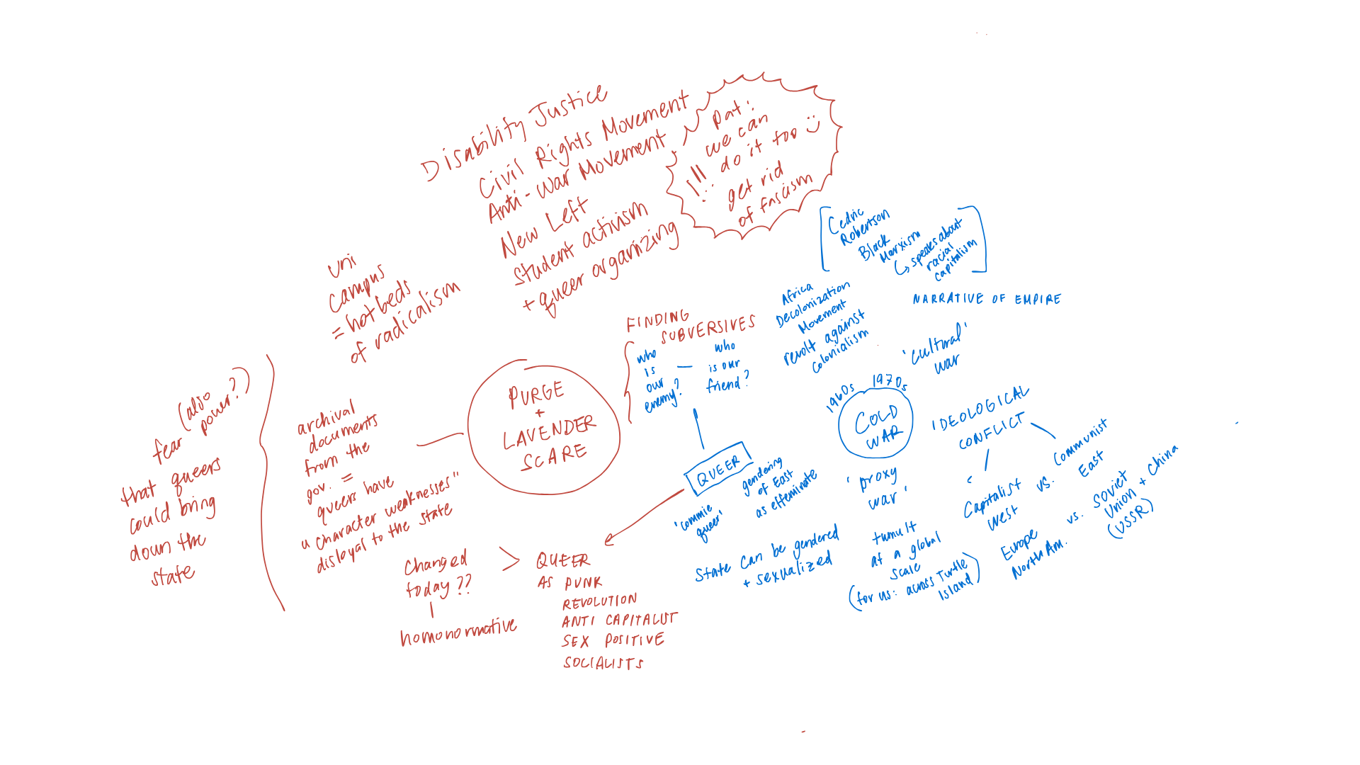 This week is about Panic & Pride, or the ways that panic over who was queer coincided and fuelled queer resistance efforts and collective action. Picking up from our discussions last week about the 'witch hunts' that occurred to find and remove queer people from the military, we'll consider the history of the Purge in Canada, or what has been called the Lavender Scare in the US during the Cold War Era. How is the Purge remembered, contextualized, and weaponized by the state? How does this come into conflict with queer resistance efforts throughout history? Expanding on the histories of queer spaces and urban hubs last week, we'll be discussing visibility and how this spurred community as well as an increase in policing and surveillance.