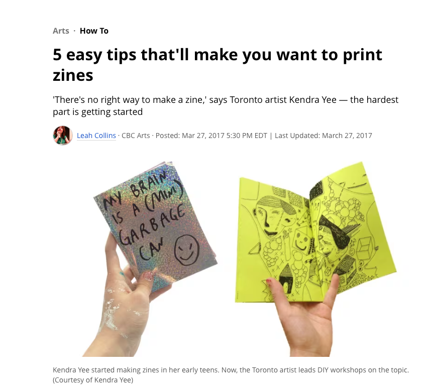 CBC article: 5 easy tips for zine-making by Leah collins