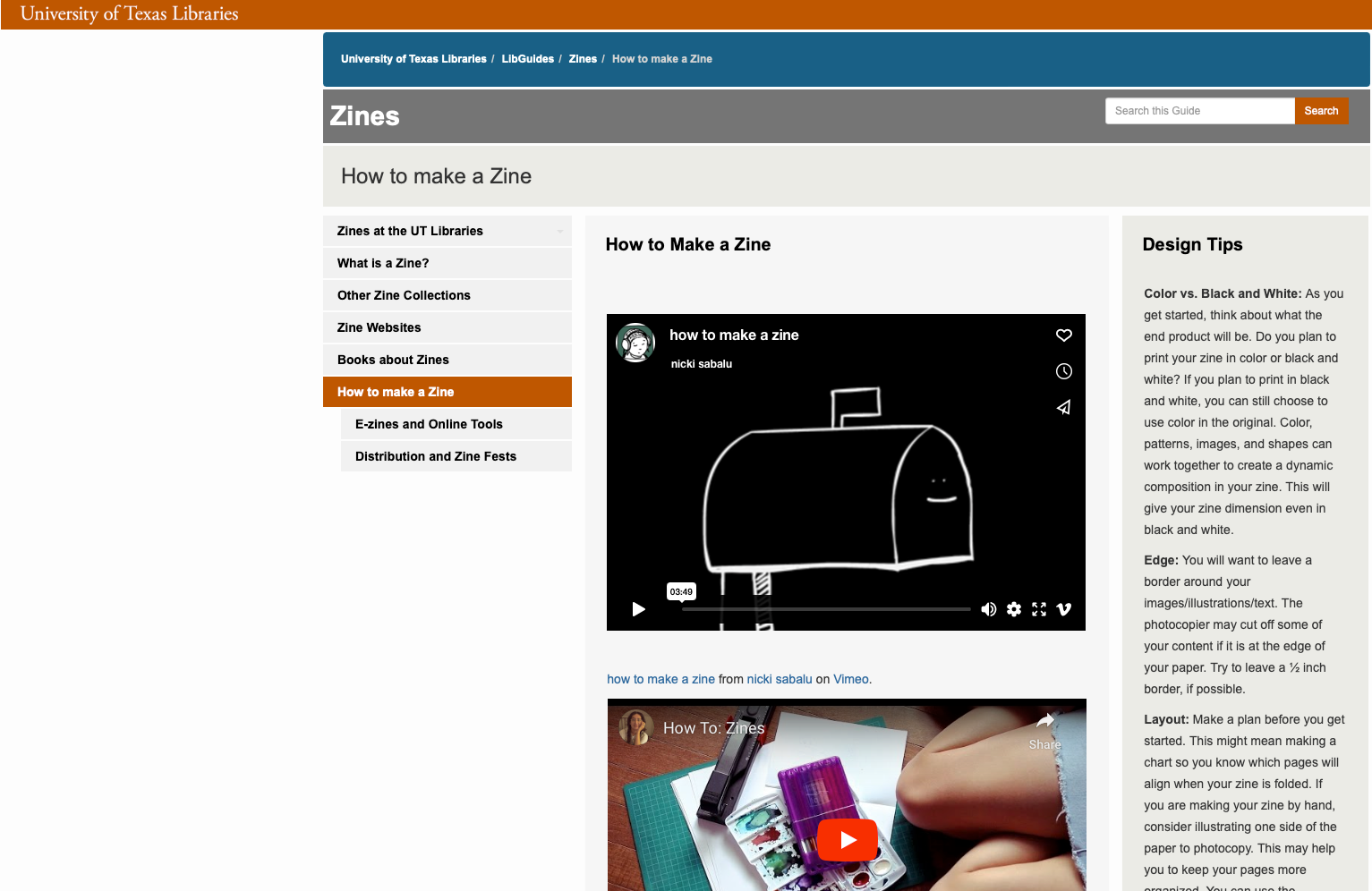 university of Texas library zine guide