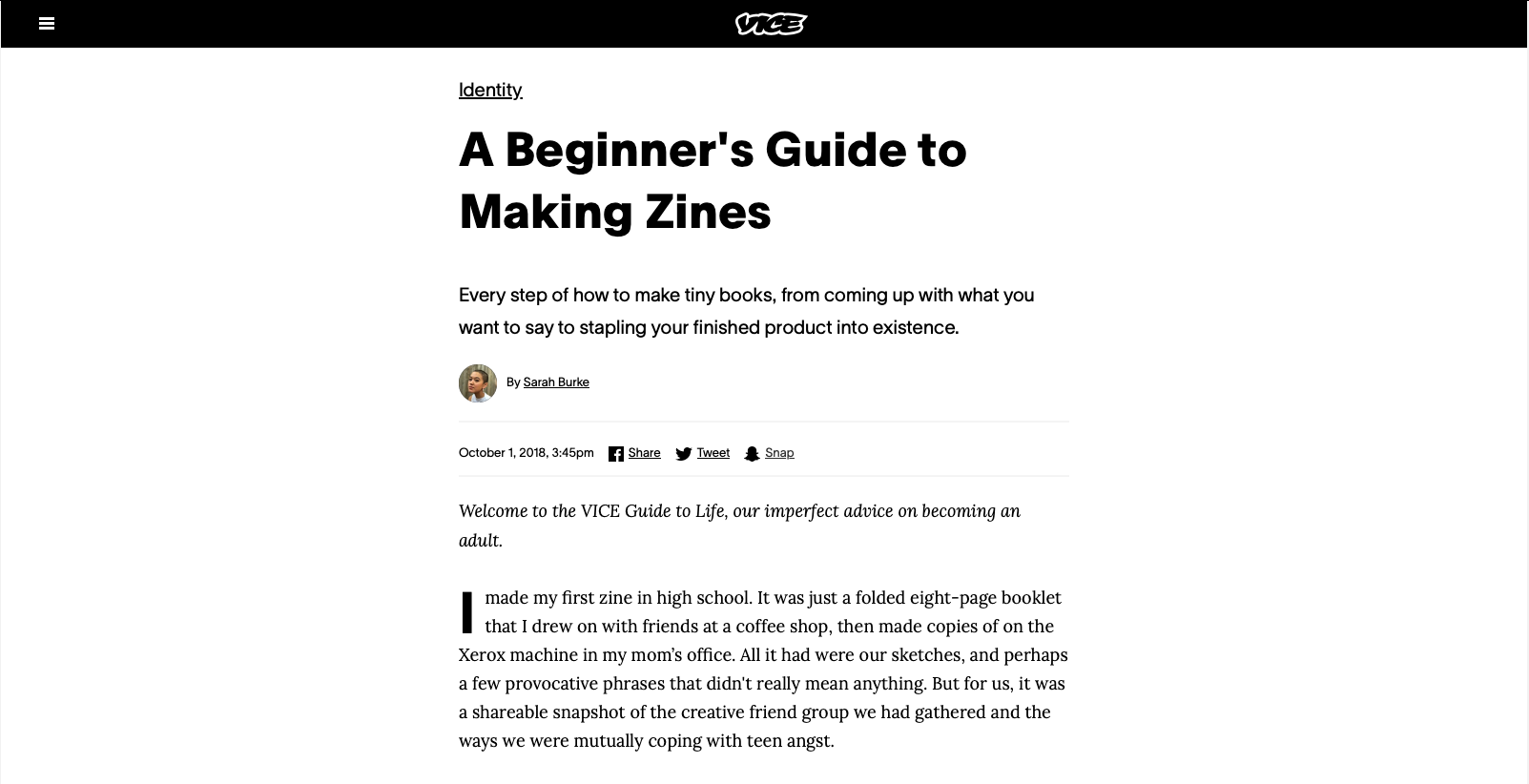 vice article : beginner's guide to making zines