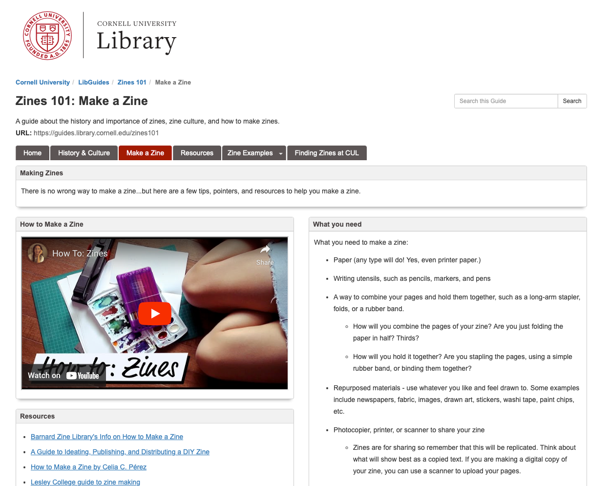 Cornell university library zine guide