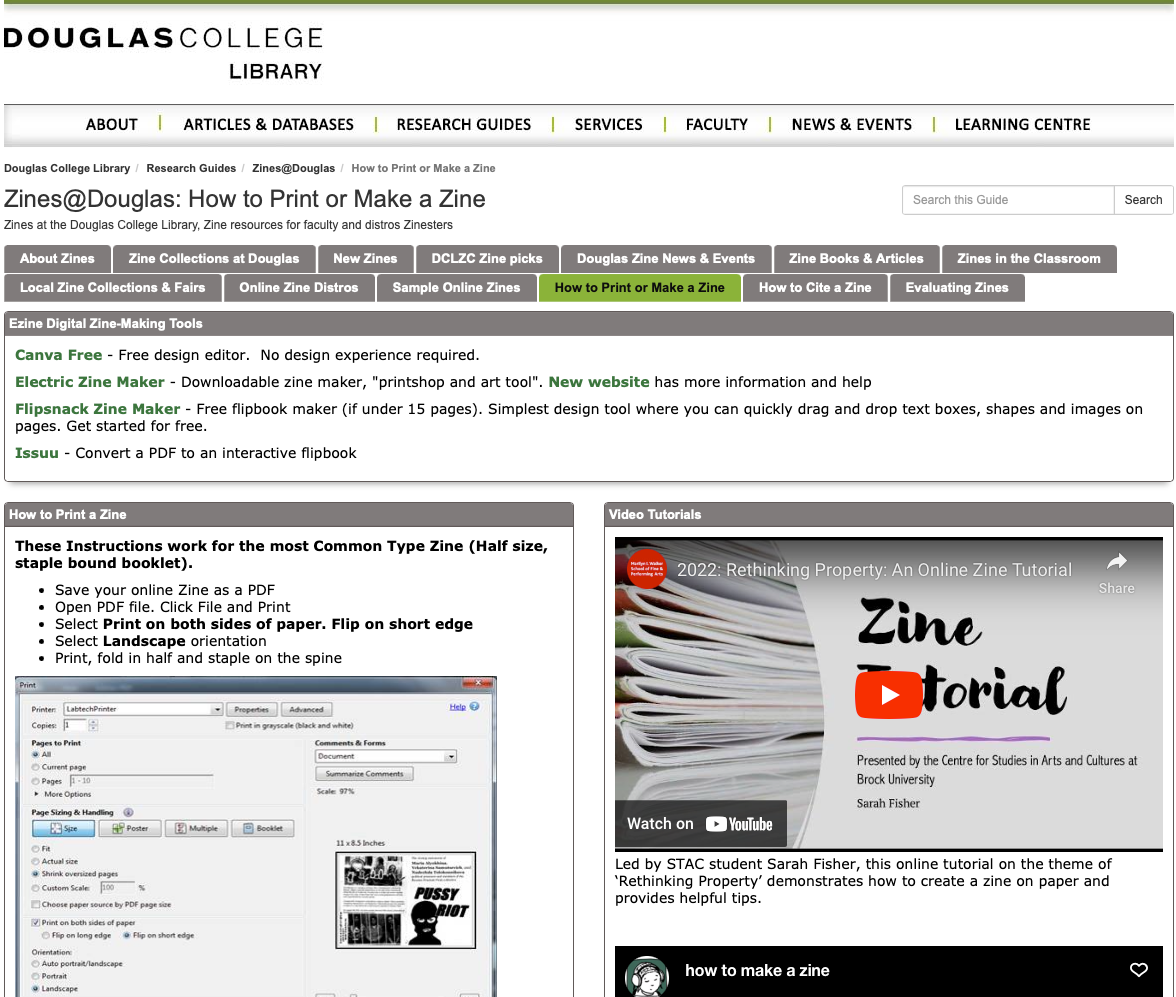 Vancouver-based Douglas college library zine guide